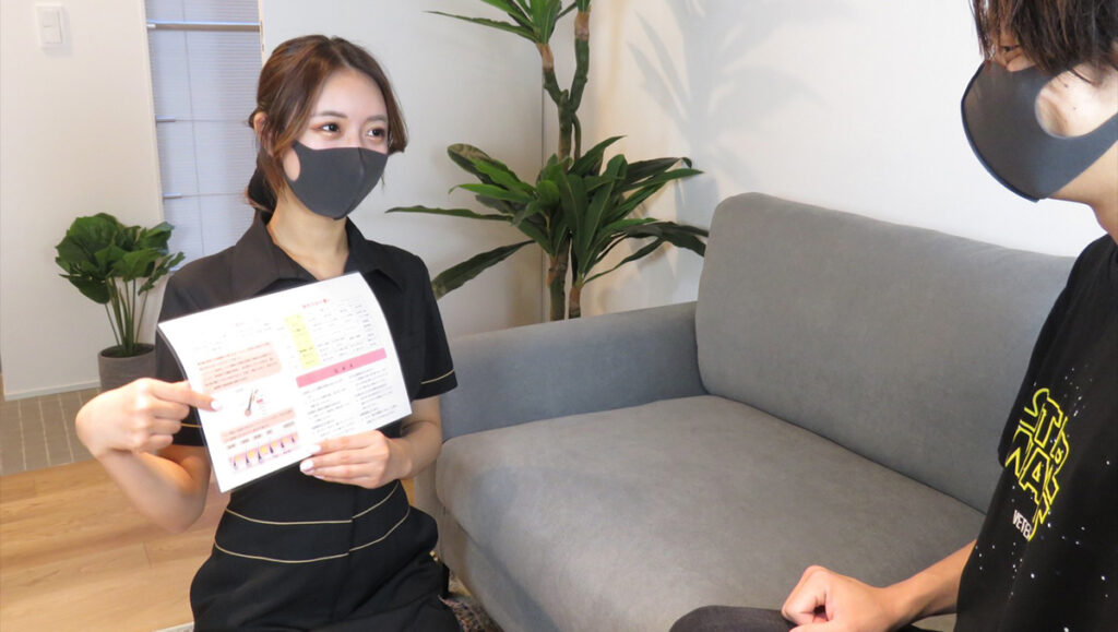 ご来店後は、お客様のお肌の状態やお悩みを伺いながらカウンセリングを行います。当日の体調やご希望に合わせて、ぴったりの施術をご提案させていただきますので、安心してお任せください。