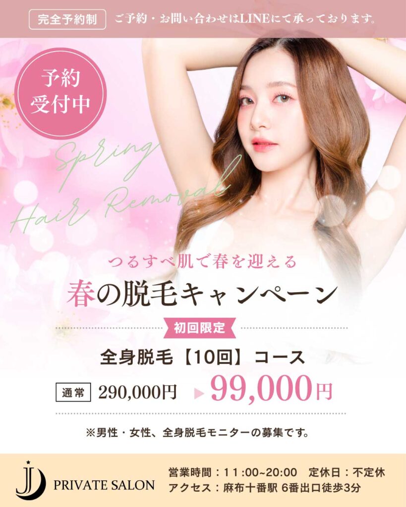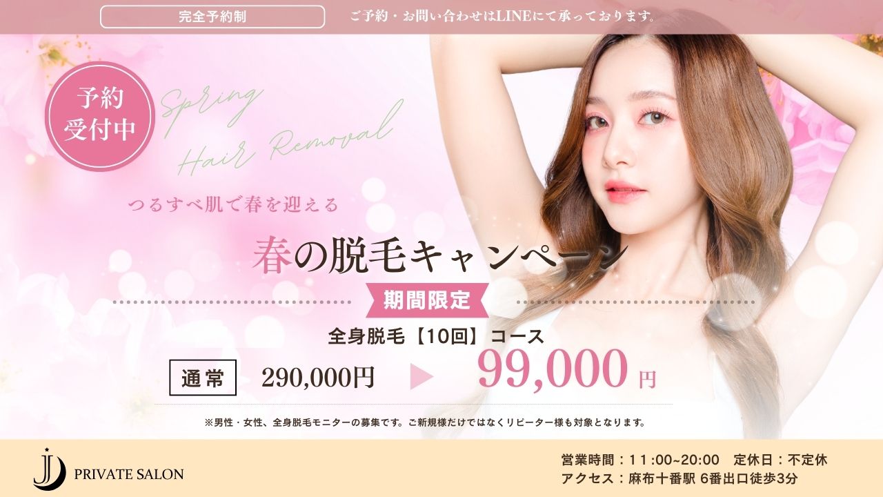 いつも麻布十番プライベートサロンJをご利用いただき、ありがとうございます。